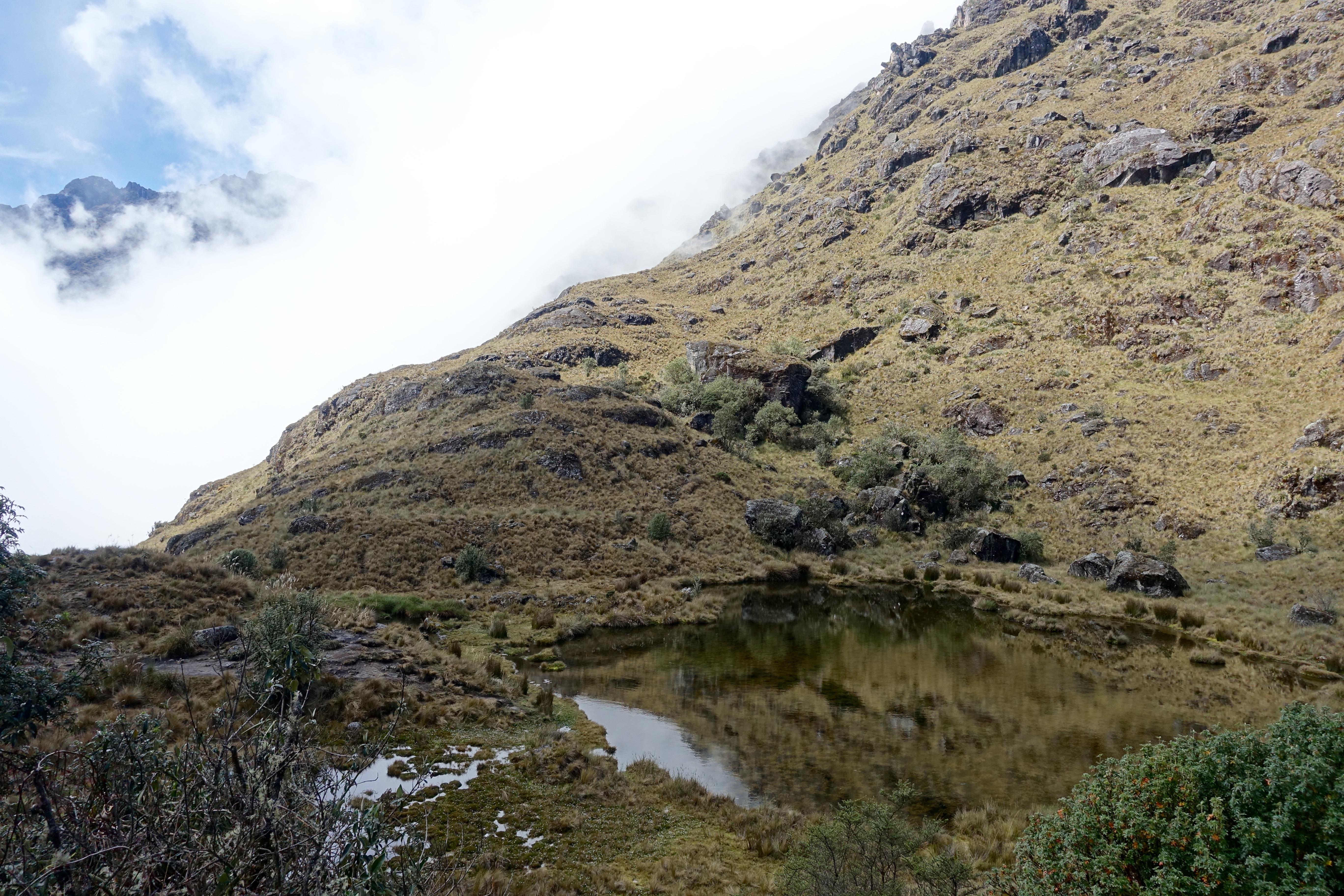 It rained again last night. We were also sleeping at the highest elevation of the hike at an elevation of 3,600 meters (11,800 ft). Surprisingly, at breakfast everyone complained about being too cold overnight, while once again, I complained about being too hot. It must be that my quilt is rated for 20 F and the temperature couldn’t have gotten below 40 F. Pretty much everyone else was renting sleeping bags from SAS Travels which were synthetic and weighed about 3 Kg, when my quilt was 850 duck down and only weighted 1.5 lbs! Tom’s sleeping bag weighed more than mine around 2.5 lbs.